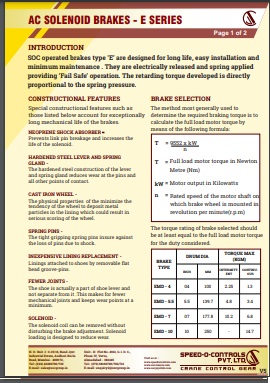 SOC operated brakes type ‘S’ are designed for long life, easy installation