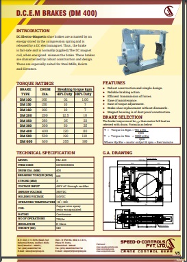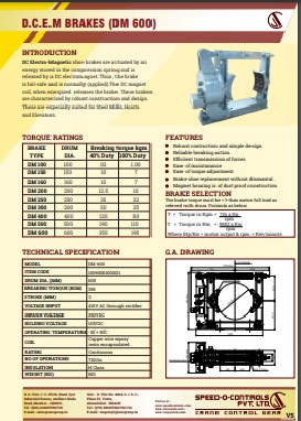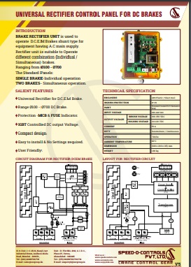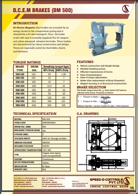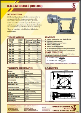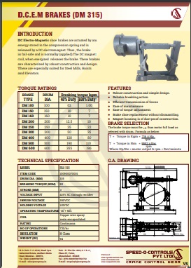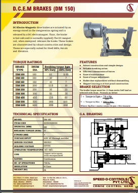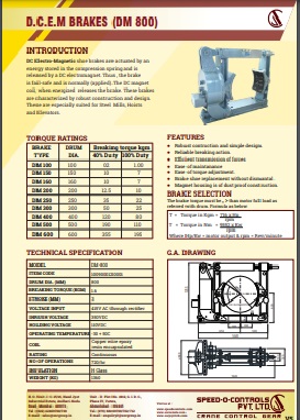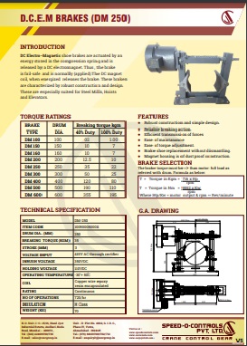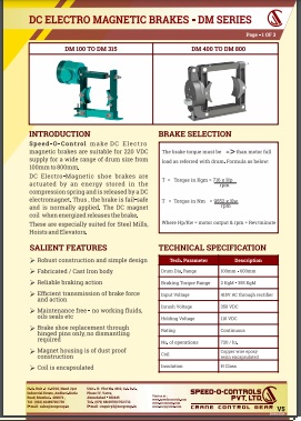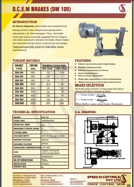 Speed-O-Control make DC Electro magnetic brakes are suitable for 220 VDC supply for a wide range of drum size from 100mm to 800mm.