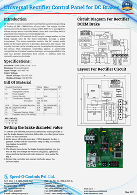 DC Rectifier is a micro-controller based system suitable for operating DC Brakes of 100 — 700 G drum of any make.