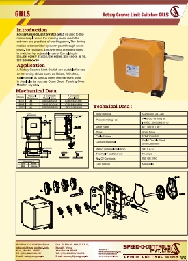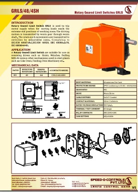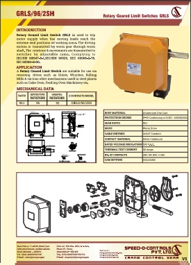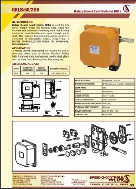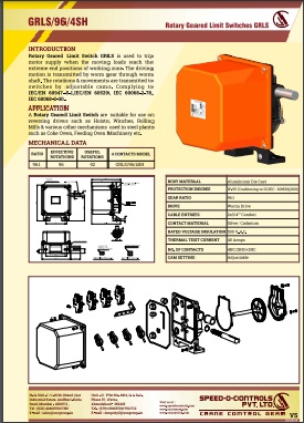 Rotary Geared Limit Switch GRLS is used to trip motor supply when the moving load reaches the extreme end positions of working zone. The driving motion is transmitted by worm gear through worm shaft. The rotations and movements are transmitted to switches by adjustable cams.