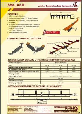 Safeline U provide safe and reliable power supply system for Cranes, Hoists, Conveyor system and mobile machinery. The single PVC housing is common for any Copper conductor. The jointless tapeform copper conductor can be pulled into previously installed housing also.